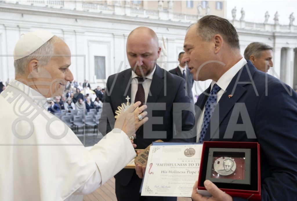 Leon XIV powiedział, że zna błogosławionego męczennika i modli się za Jego wstawiennictwem. Bratanek księdza wręczył Jego świątobliwości Medal „Wierność Prawdzie” oraz zwrócił uwagę na szczególny zbieg okoliczności, że zarówno ksiądz Jerzy, jak i sam Papież urodzili się w święto Podwyższenia Krzyża – 14 września. Wspomniał także, aby Papież przejrzał się bliżej sprawie kanonizacji błogosławionego Jerzego.
